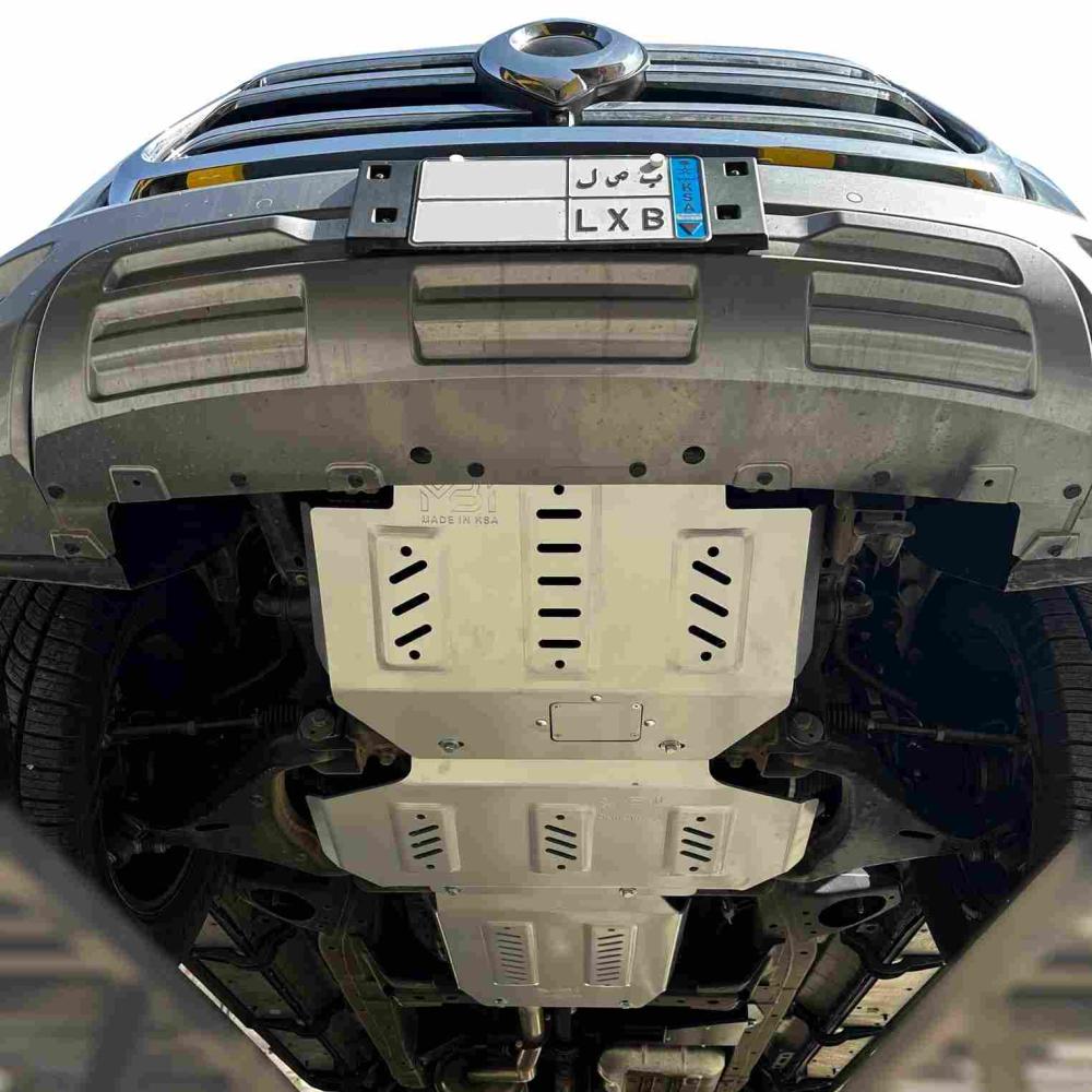 الحماية هي درع حامي و صلب لمركبتك يوفر الحماية التي تحتاجها عندما تواجه التضاريس والطرق الوعرة والصخور والحفر، مصممة بأعلى مستويات الجودة لتقديم الحماية الفائقة لأجزاء سيارتك السفلية، فهي تعمل كحاجز ضد الصدمات والصخور، بفضل تصميمها القوي والمتين، سهلة التركيب ومتوافقة مع معظم السيارات الدفع الرباعي .